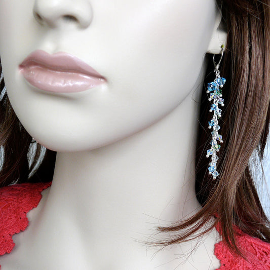 "Ocean" Handcrafted One of a Kind Swarovski Crystal & Sterling Silver Chandelier Earrings