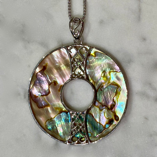 "Golden" Abalone Shell Pendant on Adjustable 17" - 20" Popcorn Chain / Rhodium-Plated Sterling Silver
