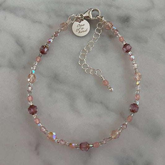 Adjustable "Desert Bloom" Brilliant Lights Glass Collection Strung Bracelet by Arpaia in Sterling Silver with Czech Glass