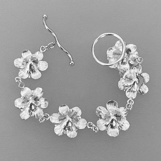 "In Full Bloom" ~ Artisan-Crafted Fine White Silver Floral Link Bracelet with Flower Toggle Clasp ~ 8" Length