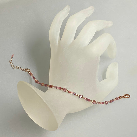 Adjustable "Burnished Rose" Brilliant Lights Glass Collection Strung Bracelet by Arpaia in 14/20 Rose Gold Filled with Czech Glass