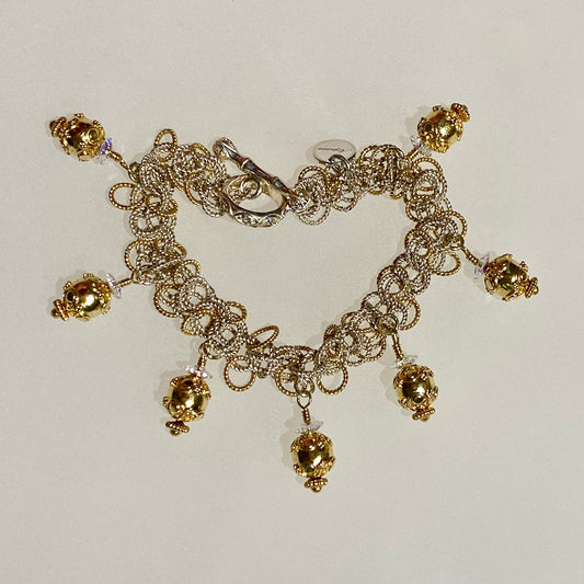 7.5" Handcrafted Sterling Silver & 24K Vermeil "Frilly Eclipse" Bracelet with Dangling Ornaments