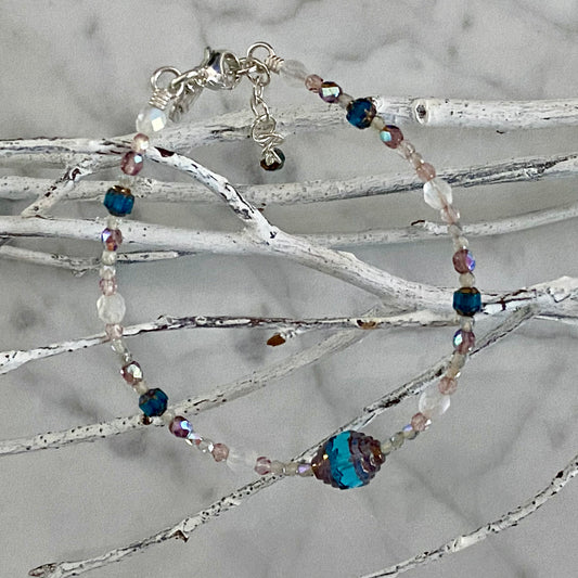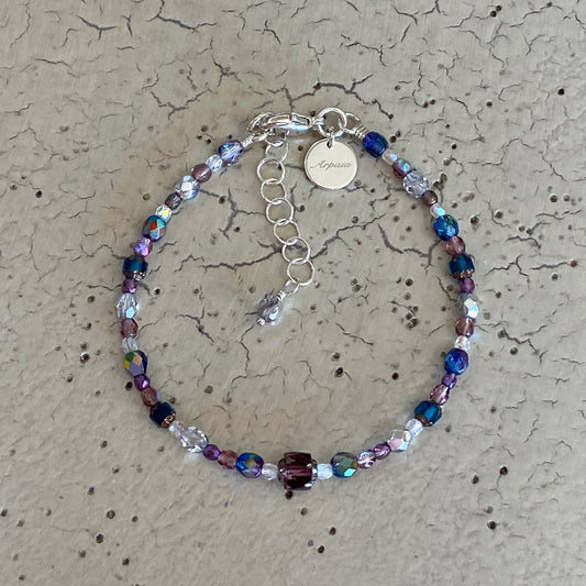 "Royal Plumes" Brilliant Lights Glass Collection Adjustable Strung Bracelet by Arpaia in Sterling Silver with Czech Glass