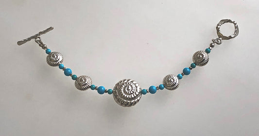 8" one of a kind Nautilus Shell Bracelet in artisan-crafted 999 Fine Silver with Sleeping Beauty Turquoise
