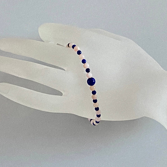 7.5" Stretch Bracelet with Natural Lapis Lazuli and Pink Peruvian Opal Beads