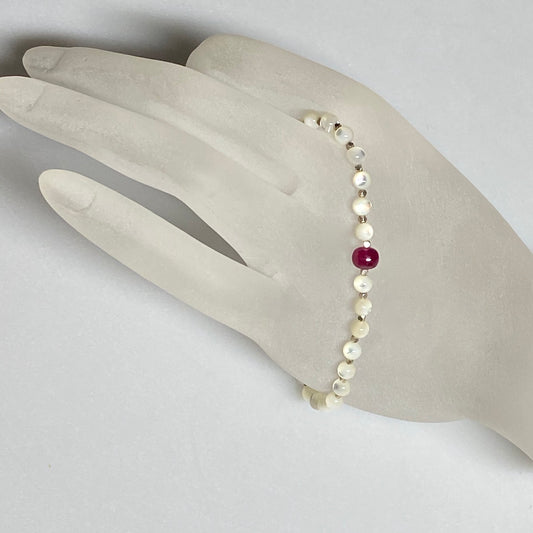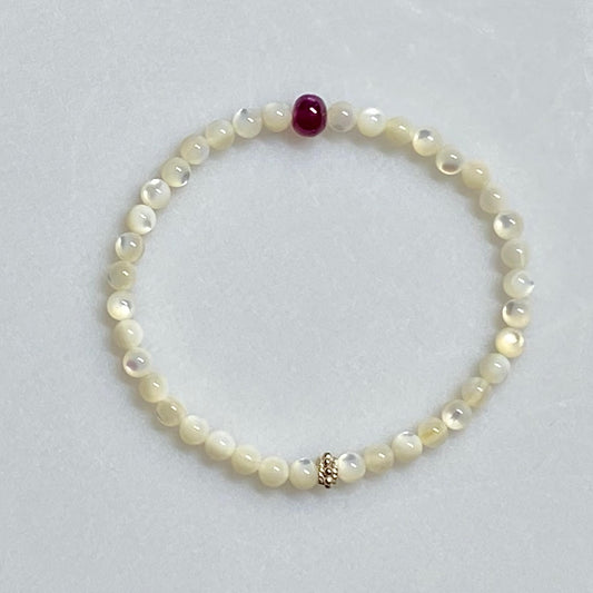 6.5" Arpaia Gemstone Stretch Bracelet with Ruby and Mother of Pearl