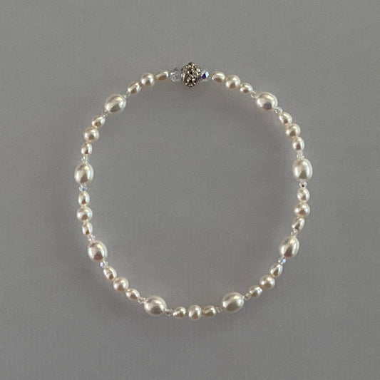 7-3/4" stretch bracelet with soft white freshwater cultured pearls and Swarovski crystal beads