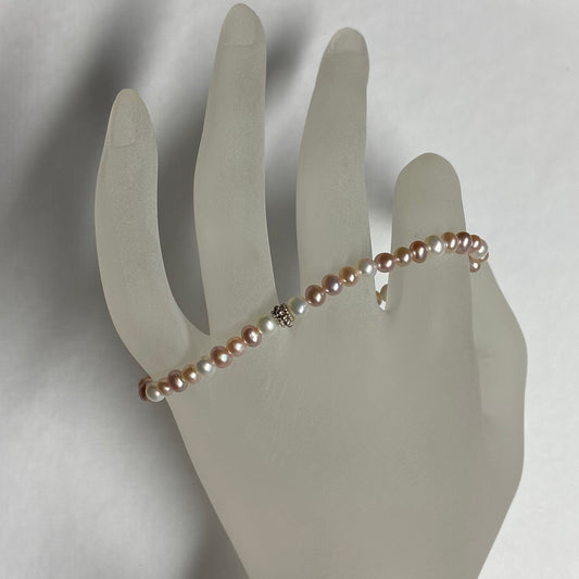 Arpaia 7.25" stretch bracelet with 4-4.5mm white and natural pink and purple cultured freshwater pearls
