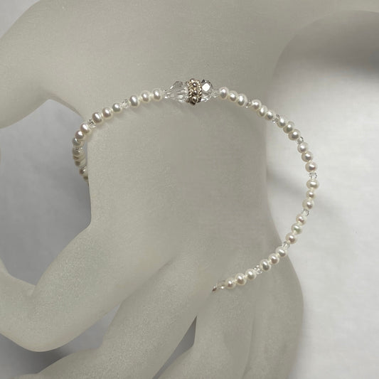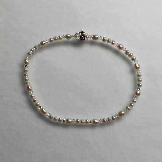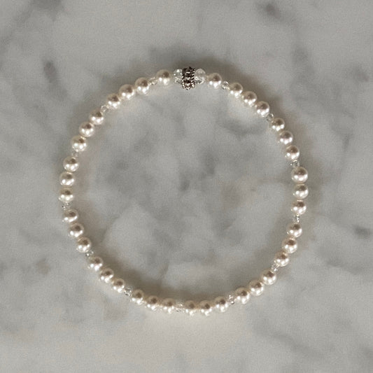 7.25" stretch bracelet with 4-4.5mm round white cultured freshwater pearls & Swarovski crystal