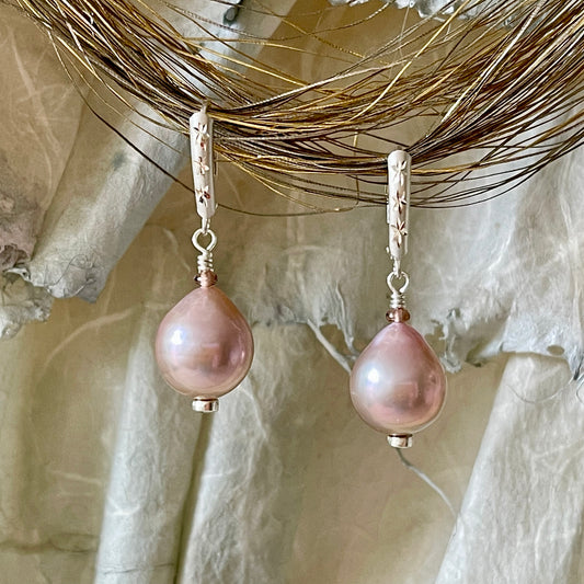 Arpaia Drop Earrings in Sterling Silver with Natural Pink Color Cultured Freshwater Plump Pear Pearls & Spinel Gemstones
