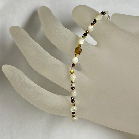 Arpaia "Rockaway Beach" stretch bracelet with natural brown tourmaline & multi-color mother of pearl gemstone beads