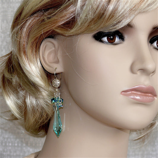 "Ocean" Handcrafted One of a Kind Swarovski Crystal & Sterling Silver Chandelier Earrings