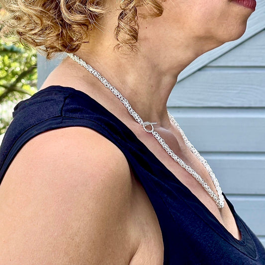 16.75" Handcrafted 925 Sterling Silver 7mm Byzantine Necklace with Toggle Clasp