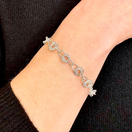 7.75" Handcrafted 925 Sterling Silver Circles & Love Knots Bracelet with Toggle Clasp